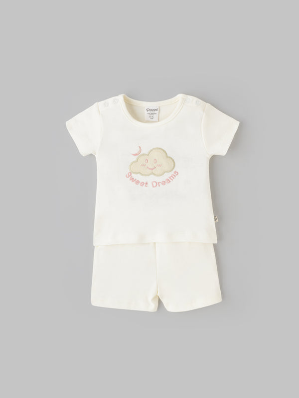 Popees pure cotton coordinated set for boys comes with a Half sleeve top with shorts. The shorts come with a soft, elasticated waistband that fits your baby just right. Made with 100% soft cotton and baby-safe dyes, this coordinated set makes your little pearl stand out in style and comfort. This set is perfect for everyday wear.