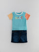 Popees coordinated set for boys comes with a half-sleeve t-shirt and shorts. With a snap button closure at the shoulder, outfit changes are quick and easy. The denim shorts come with an adjustable waistband that lets you adjust according to your baby. Made with baby-safe dyes this coordinated set makes your little rockstar stand out in style and comfort.