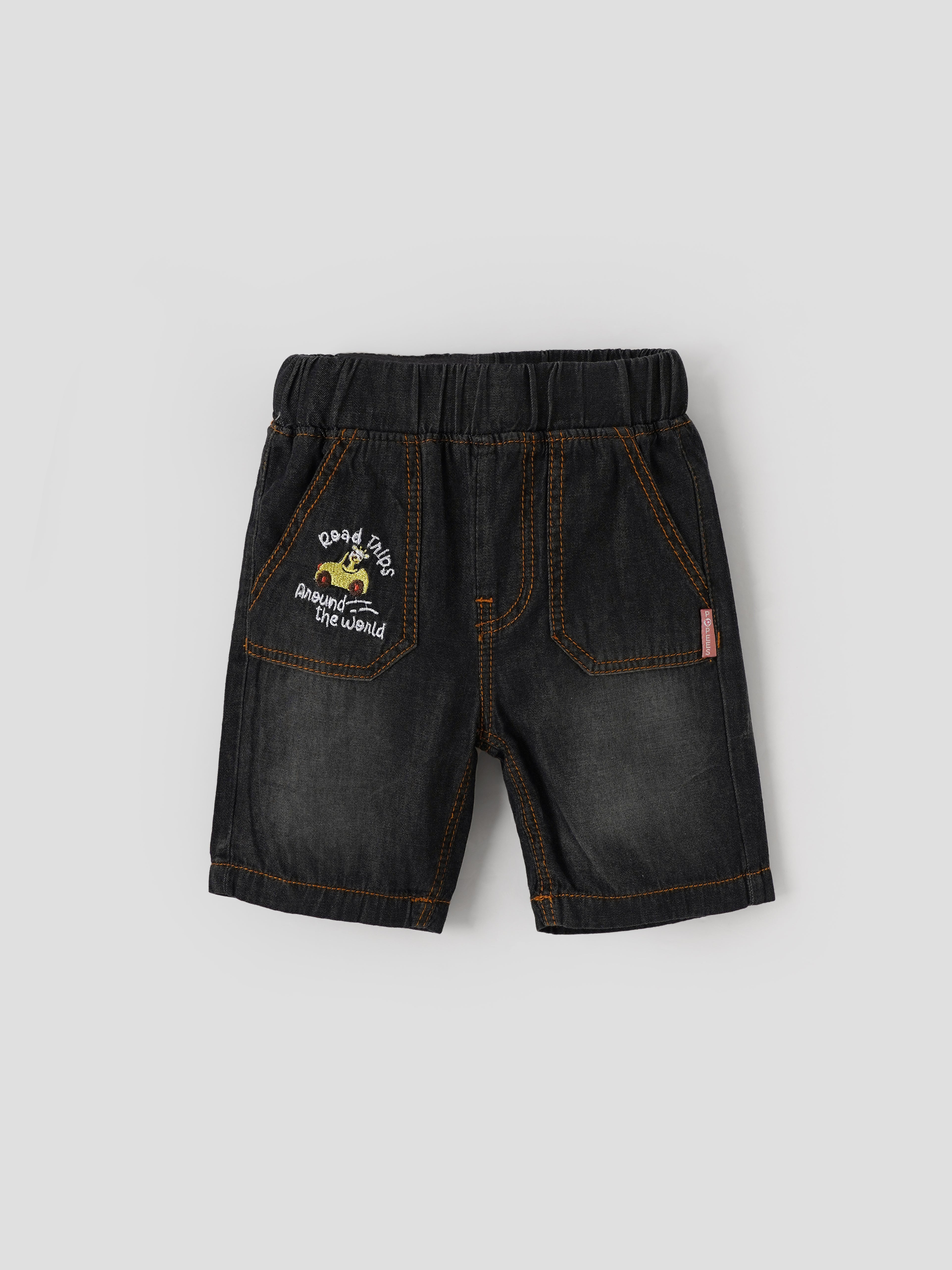 Popees Stylish Comfortable Everyday Wear with Embroidery Black Shorts(3-36 Months)for Baby Boys