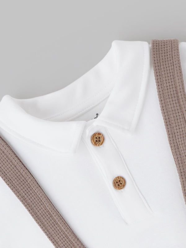 Popees Classic Party Wear Outfit – White Tee & Shorts with Suspenders (3–36 Months) for Boys