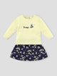Style your little fashionista in Popees fleece coordinated set. This coordinated set comes with a full-sleeved top and skirt. With button closure at the back, outfit changes are quick and easy. The flared skirt has an elasticated waist that would fit your child just right. The vibrant colours and prints would sure make your child the center of attention.
