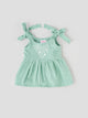 Dress your little one in this delightful Popees top, designed for both style and comfort. Crafted from 100% organic cotton, it ensures softness and breathability, perfect for your newborn's delicate skin. The top features charming frill detailing and full-sleeves, adding a touch of sweetness to her outfit. With a convenient snap button closure at the front, dressing becomes a breeze. Ideal for everyday wear or special occasions, this top combines practicality with adorable design. Made with natural dyes and free from harmful chemicals, it provides a gentle fit for your baby's comfort.