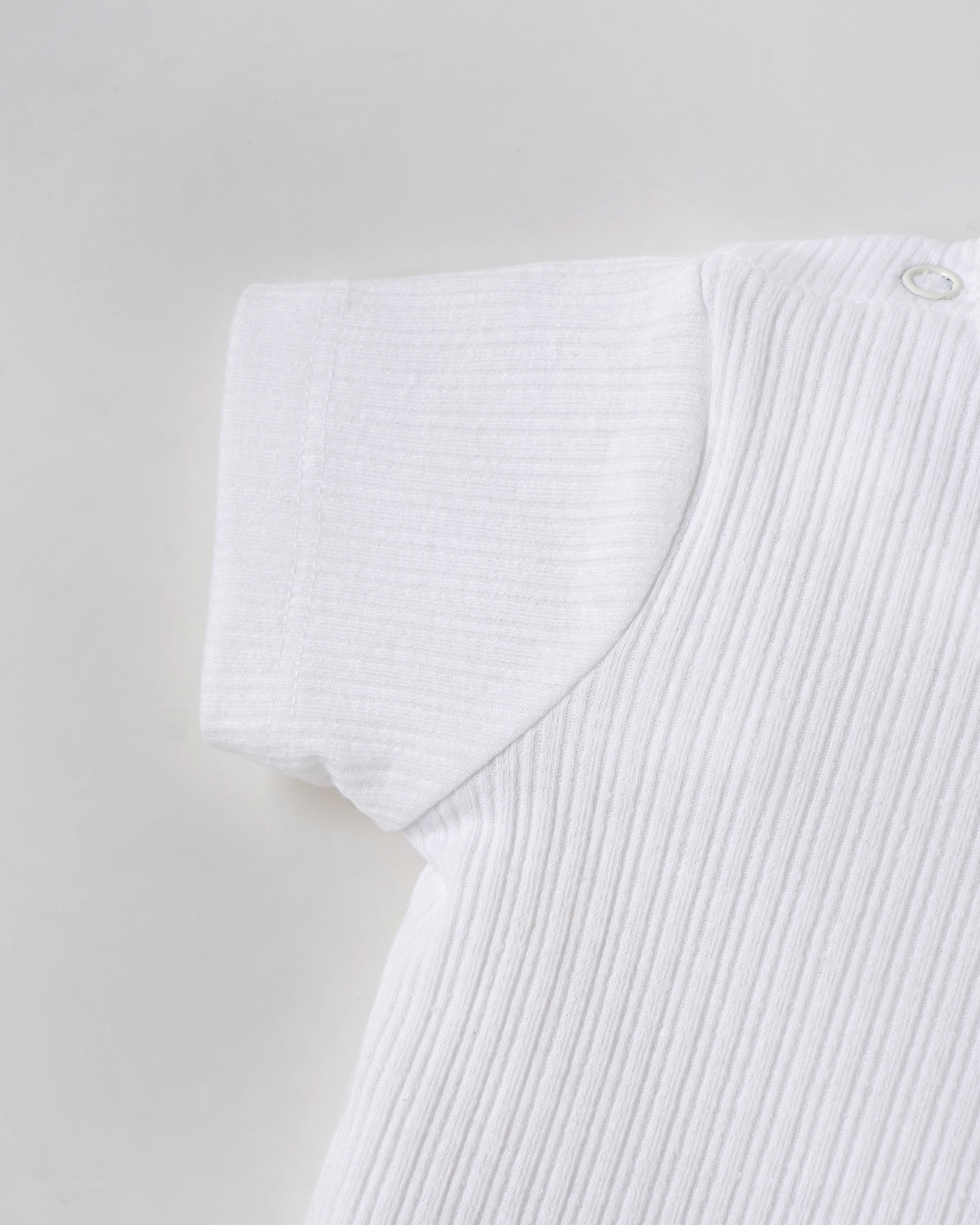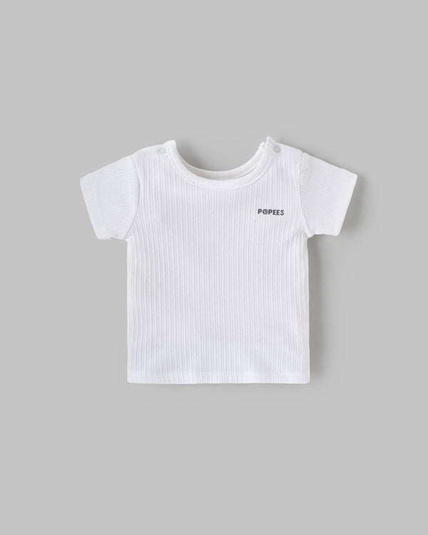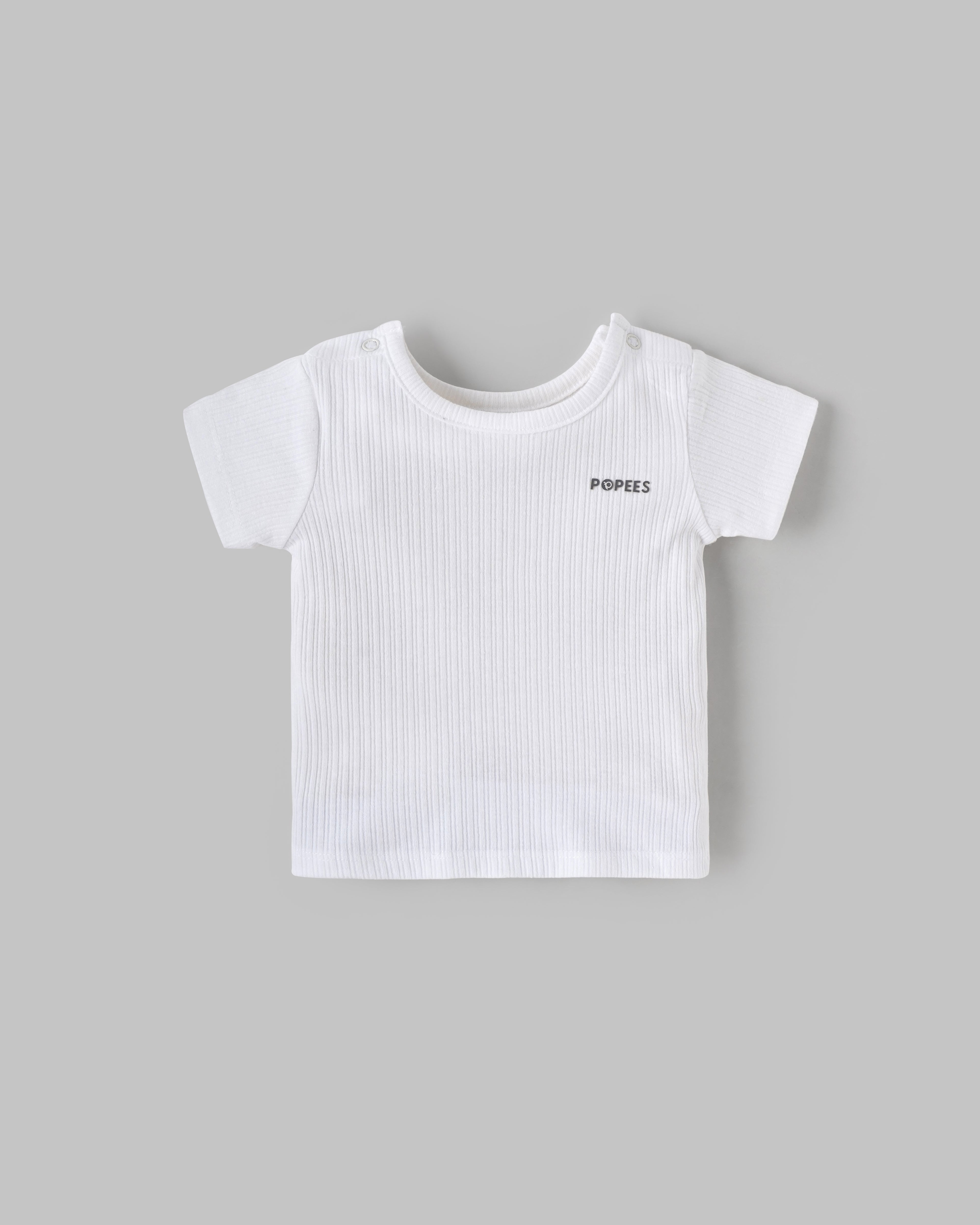 The Stylish T-Shirt for unisex is a must-have for your little one's wardrobe. Made from soft, breathable doriya rib fabric, this T-shirt ensures comfort all day long. In a trendy bright white color, it's available for boys aged 0-9 months. Trust Popees for the highest quality, ensuring your baby’s delicate skin stays comfortable and irritation-free.