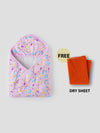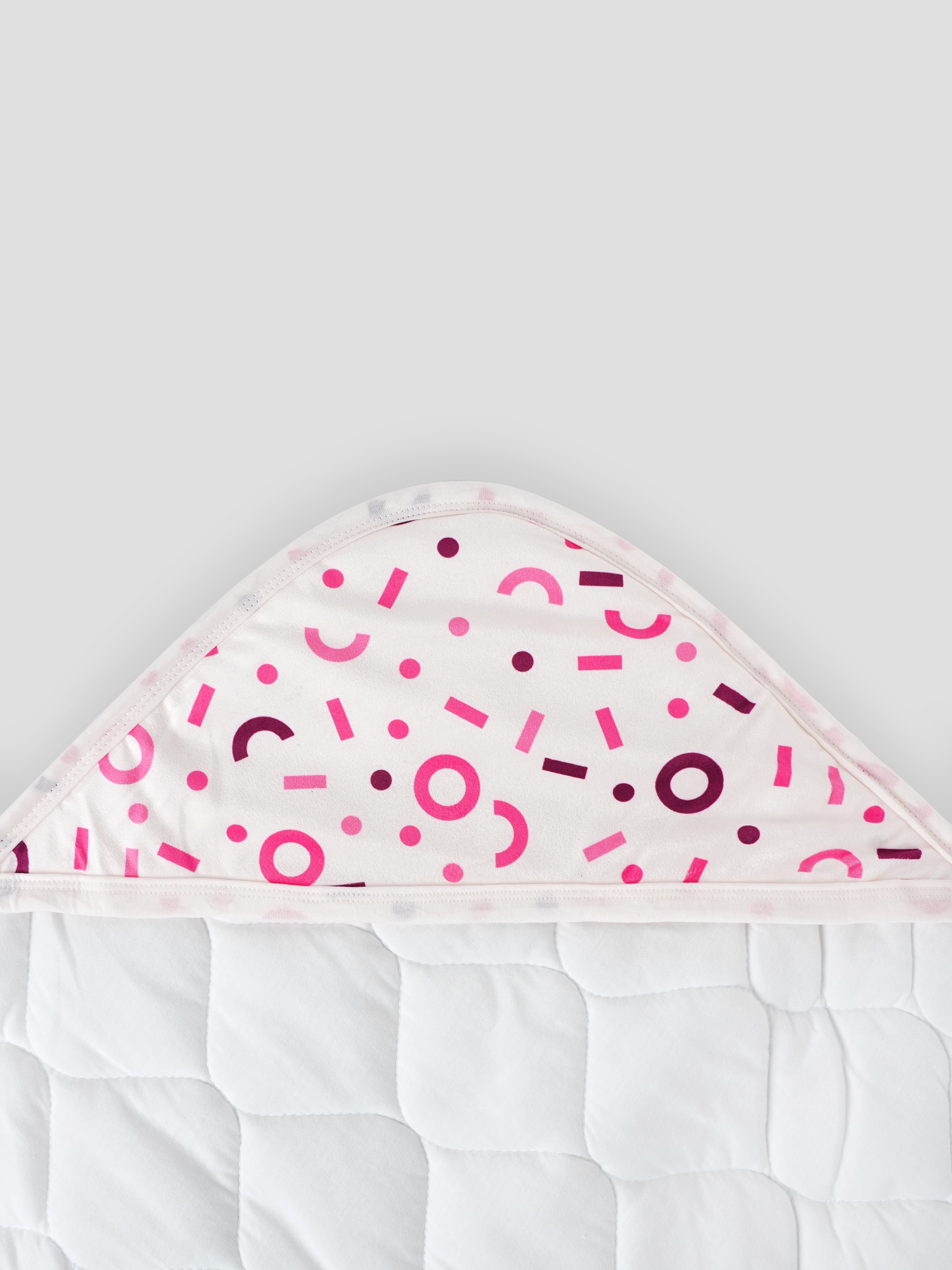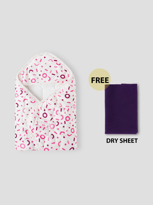 Baby Swaddle Wrap – Soft, Hooded Quilted Wrapper for Newborns & Infants (Printed Design) – Comes with a Free Dry Sheet