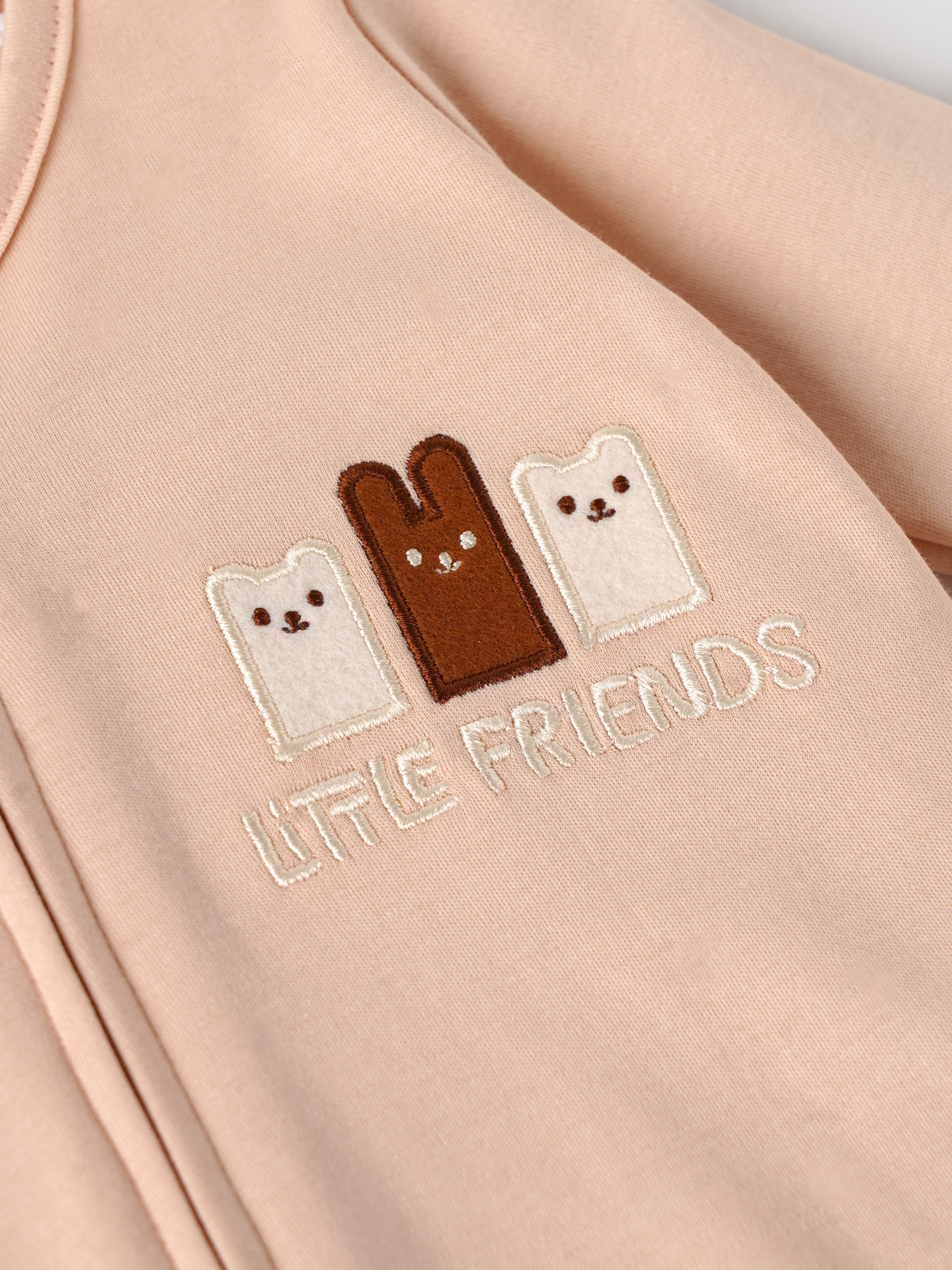 | Pattern | Solid with Embroidered “Little Friends” Motif |