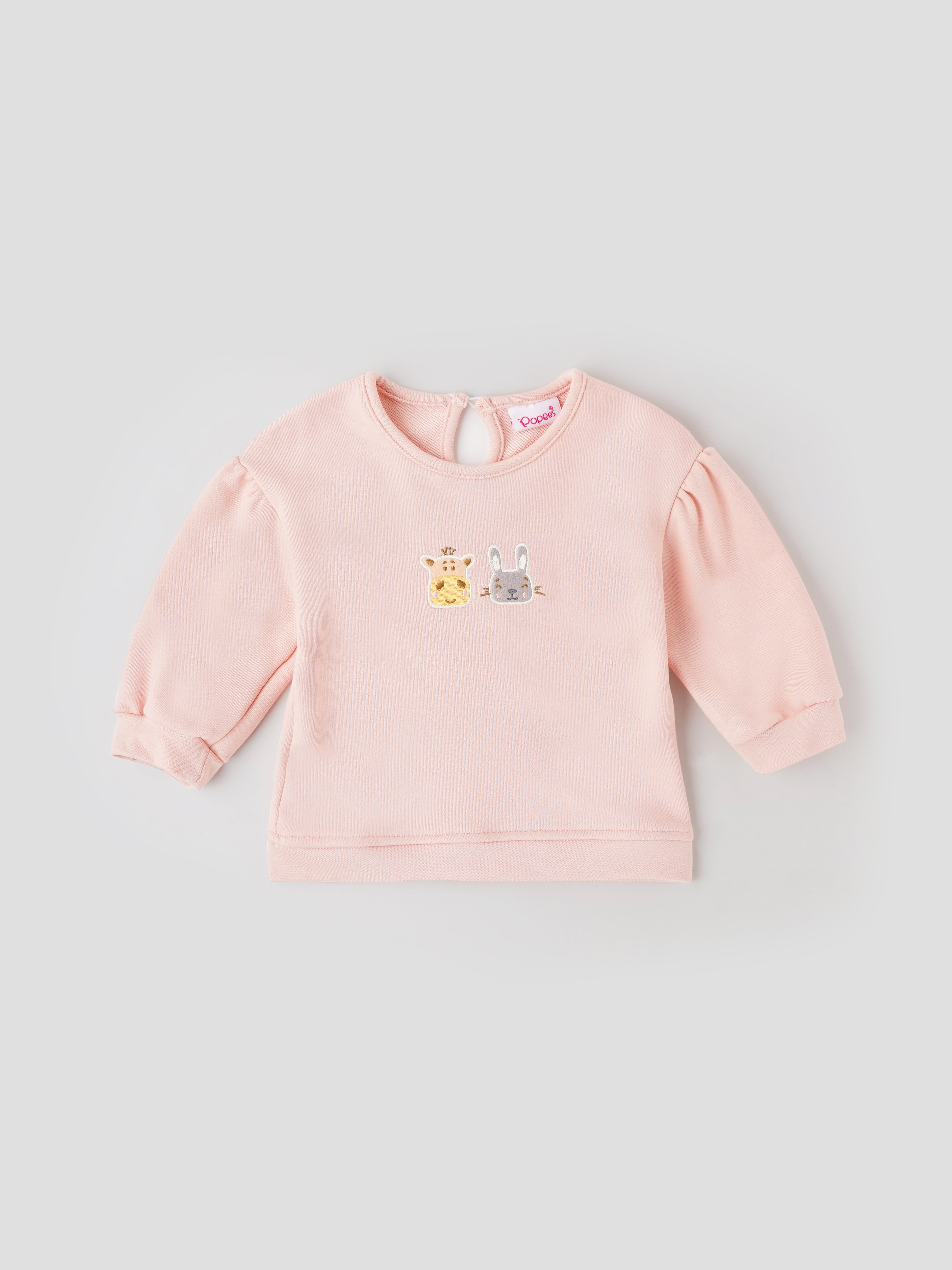 Popees Soft Pink with Animal Face Embroidery Warm, Comfy & Adorably Stylish T-Shirt (3-24 Months) for Baby Girls