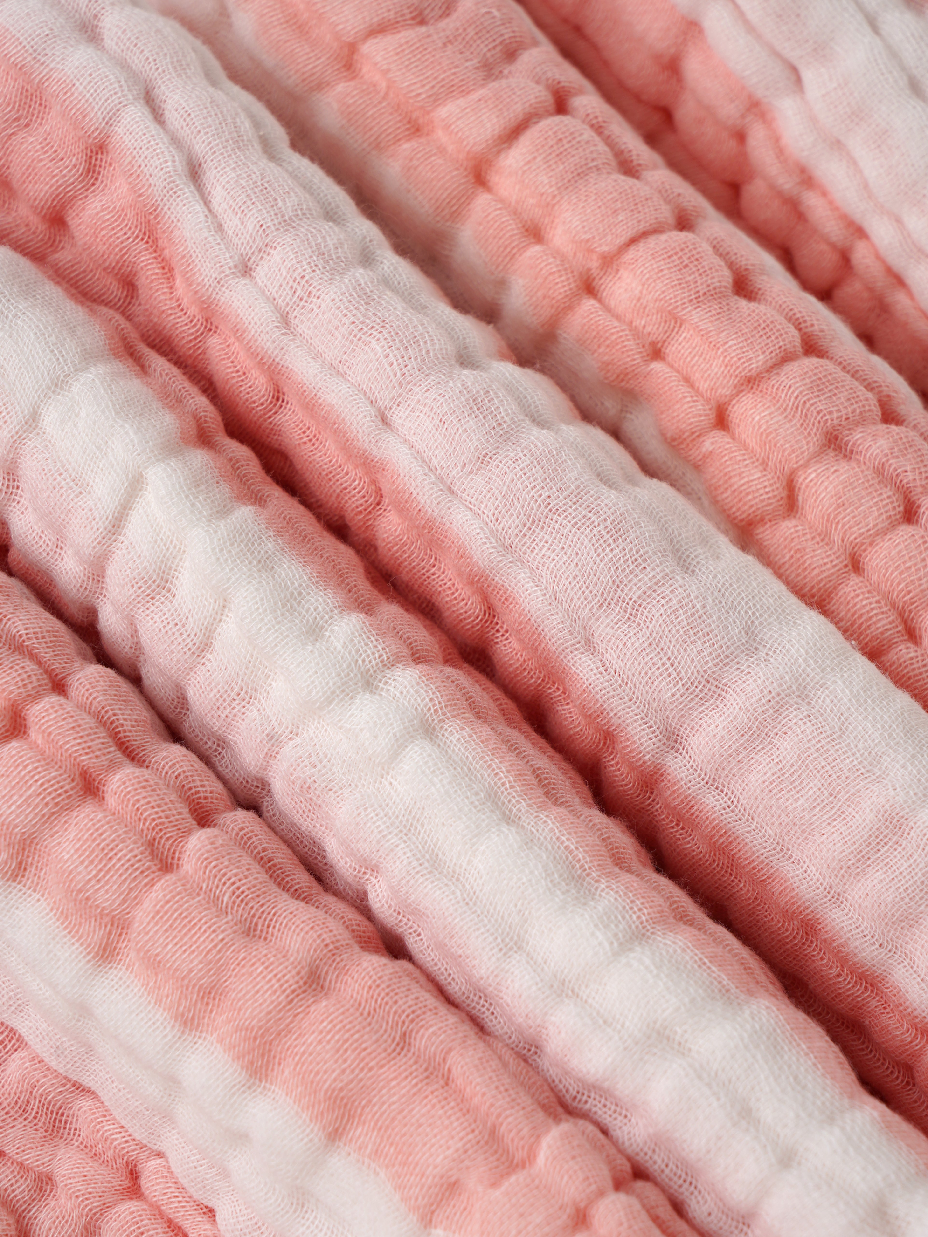 Soft Striped Design – Elegant peach and white stripe pattern with a crinkled muslin texture.