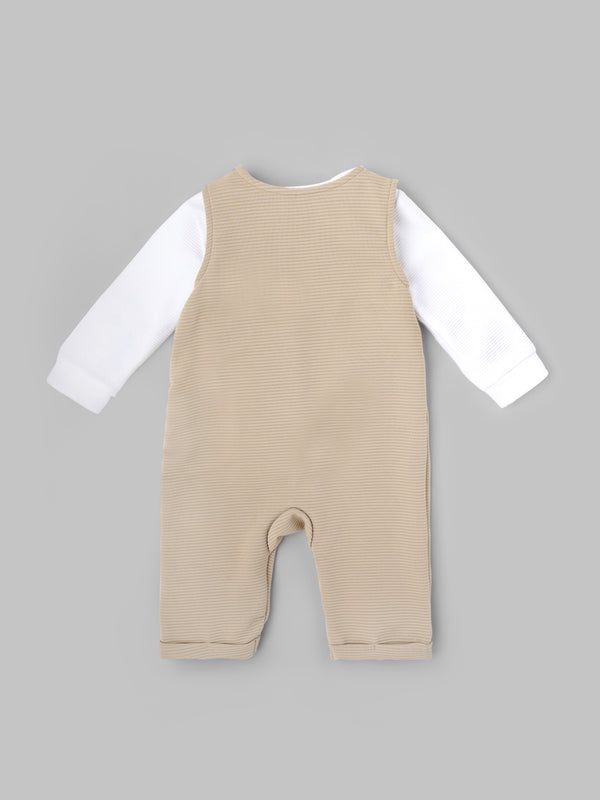 Our Dungaree set for newborn boys comes with a full-sleeved bodysuit, pants with suspender Crafted from 100% buttery soft cotton and baby-care safe dyes, this coordinated set is perfect for your baby’s gentle skin. This set provides maximum movement and comfort to your little bug in style. The bodysuit has snap buttons, making diaper changes easy. The adjustable suspenders allow you to customize the fit for your baby.