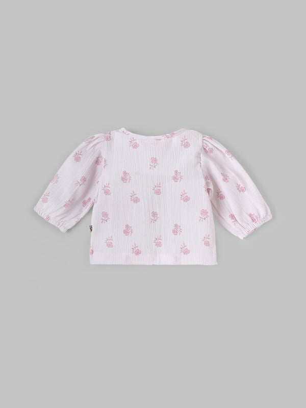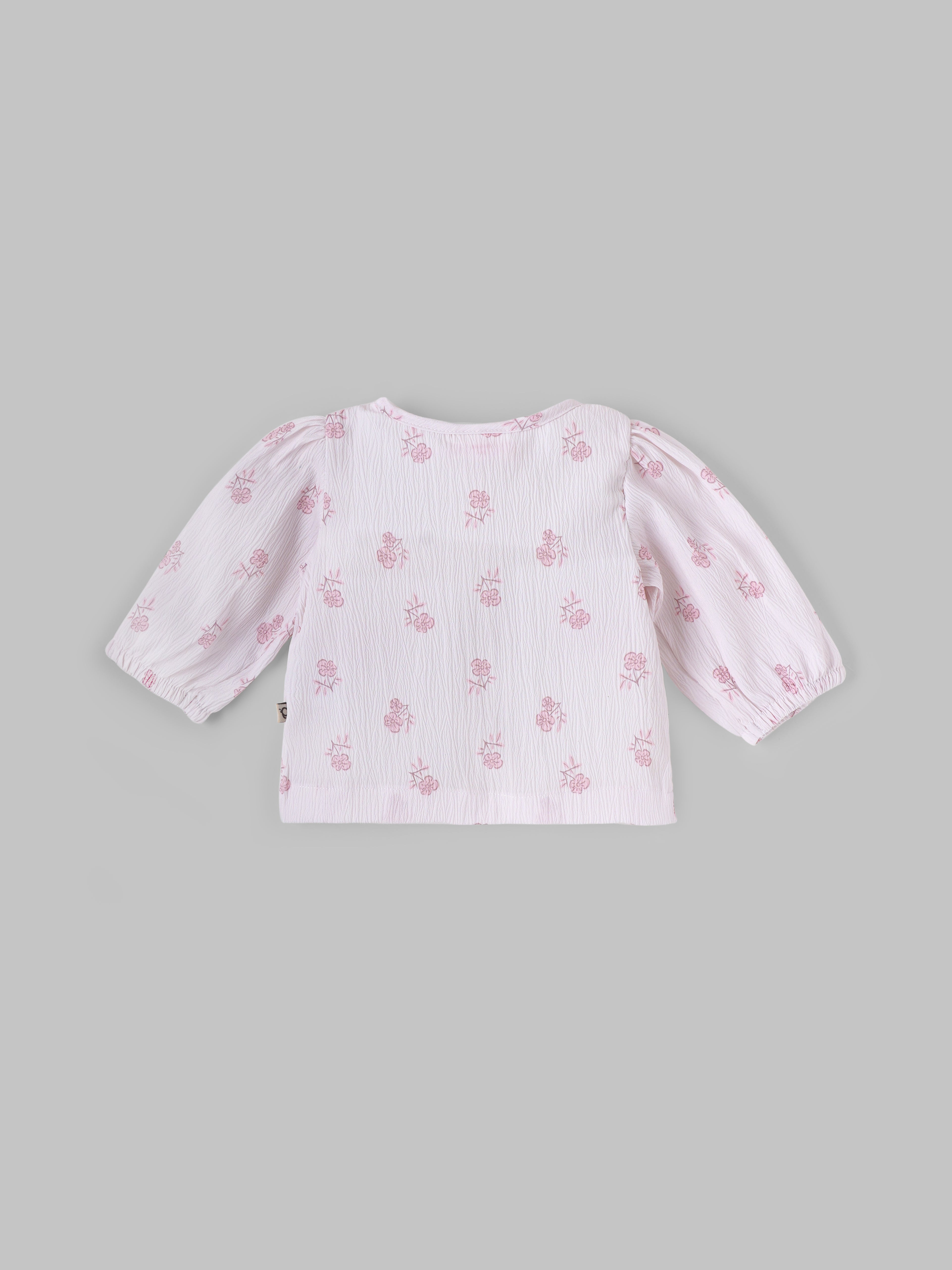 Dress your little one in this delightful Popees top, designed for both style and comfort. Crafted from 100% organic cotton, it ensures softness and breathability, perfect for your newborn's delicate skin. The top features charming frill detailing and Full-sleeves, adding a touch of sweetness to her outfit. With a convenient snap button closure at the front, dressing becomes a breeze. Ideal for everyday wear or special occasions, this top combines practicality with adorable design. Made with natural dyes and free from harmful chemicals, it provides a gentle fit for your baby's comfort.