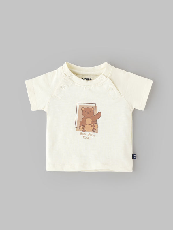 Popees Soft Cotton T-Shirt Cute Teddy Bear Print, Gentle on Skin (0-9 Months) for Baby Boys