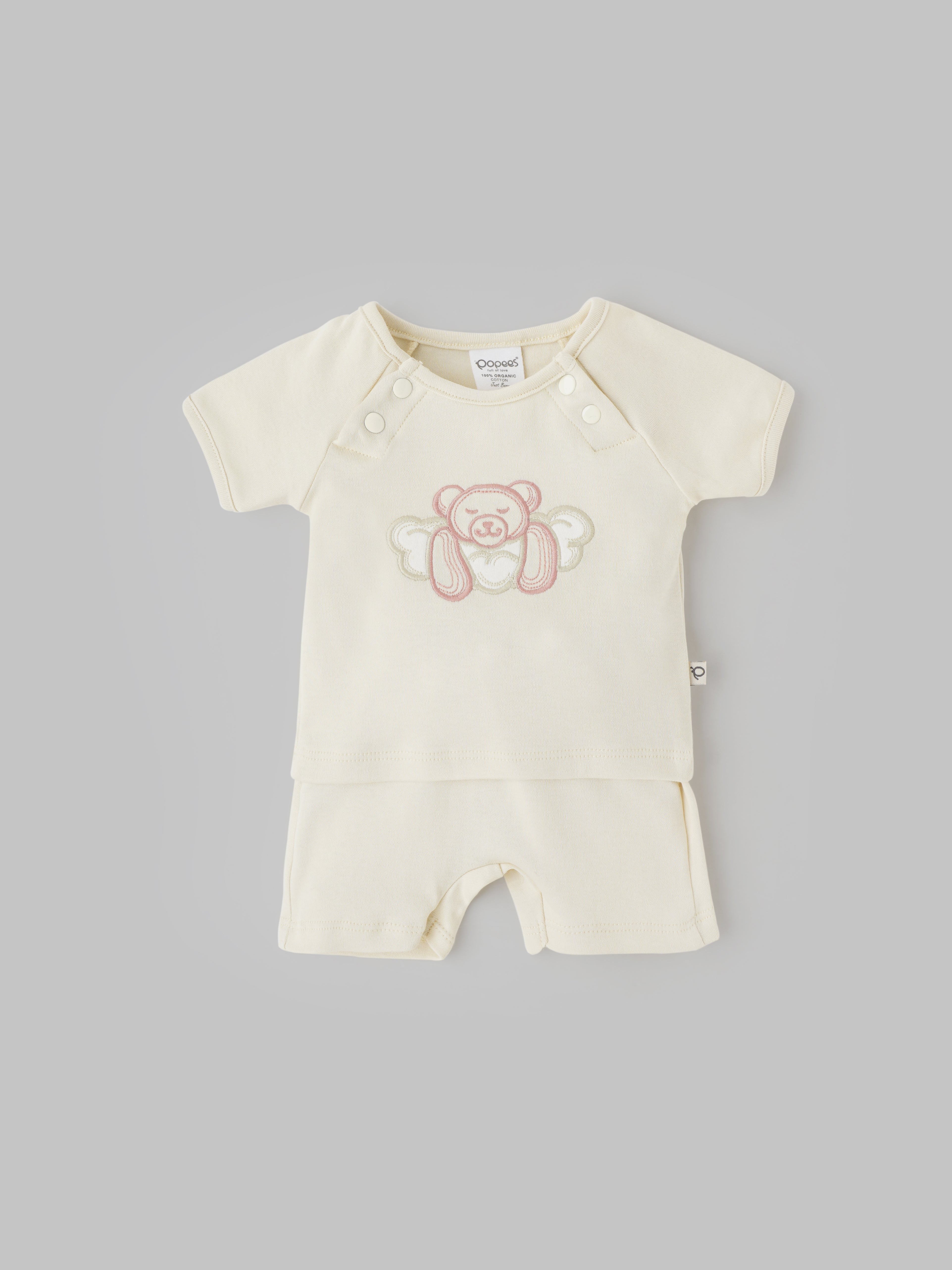 Popees Unisex Cotton Baby Coordinated Set with Adorable Teddy Bear Embroidery (0-9 Months)for Babies