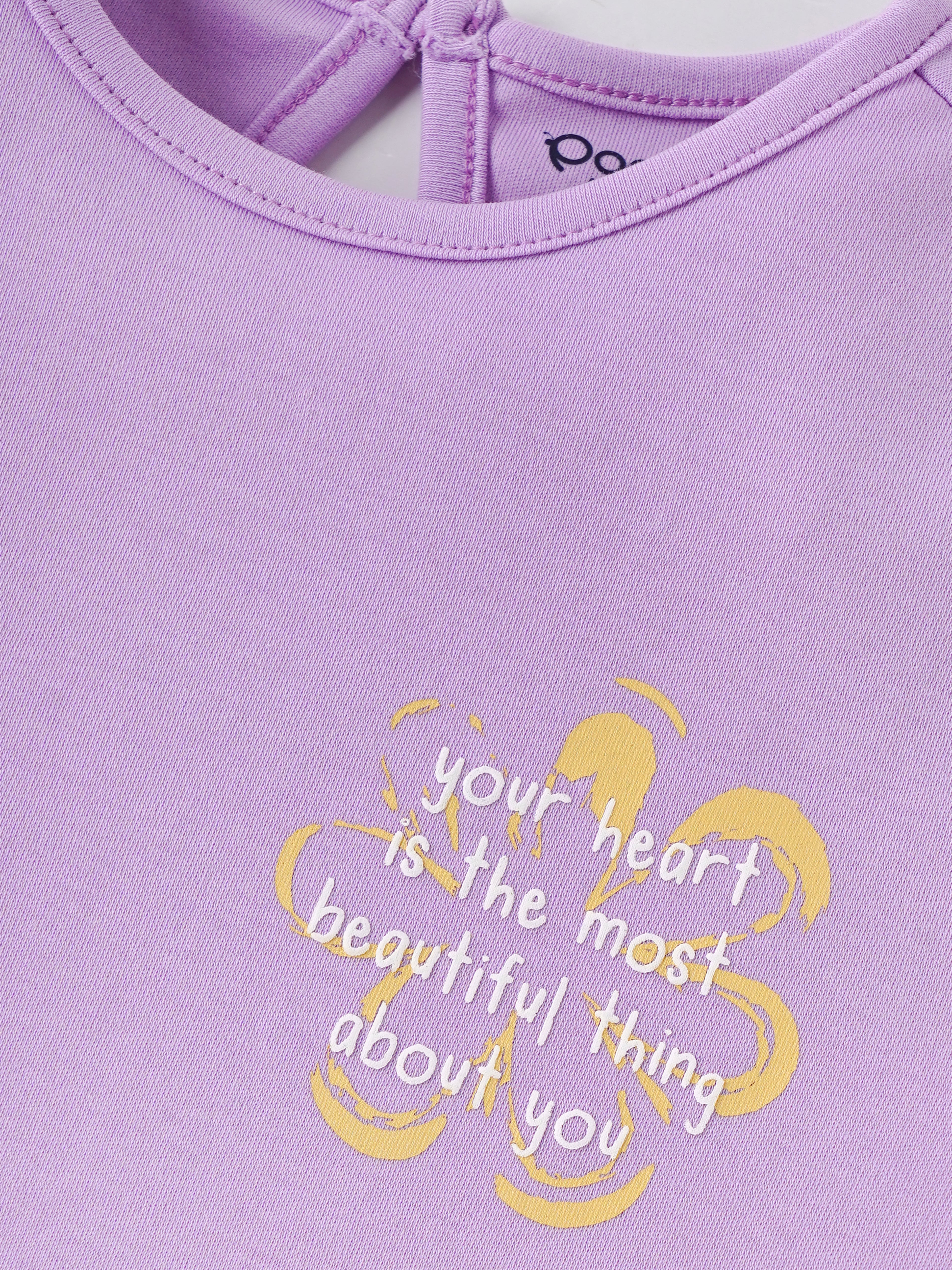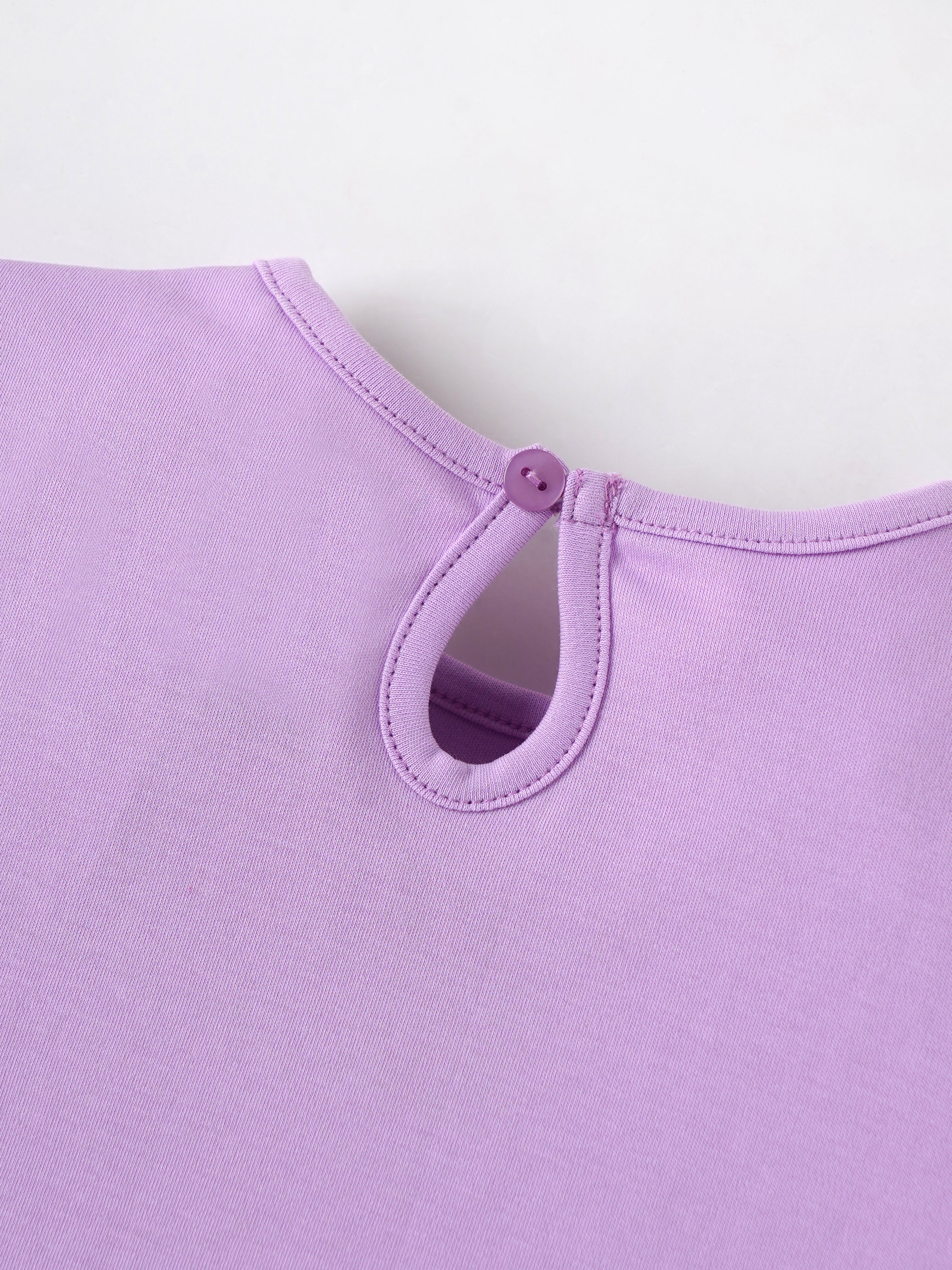 This chic and adorable half-sleeved top is perfect for your little girl. Crafted from soft and breathable interlock cotton, it ensures all-day comfort. The lilac color adds a touch of sweetness, while the intricate cloth work design on the sleeve adds a playful touch. The half-open back design makes it easy to dress and undress your baby.