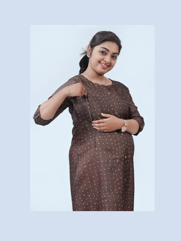 Embrace your gorgeous baby bump in Popees maternity dress! This buttery-soft and breathable dress keeps your comfy throughout the day. The A-line silhouette and the three quarter sleeves make you stand out in style and comfort! The pleats on the waist creates a flattering silhouette and adapts to your growing baby bump while giving you a snug fit. This beautiful dress with stylish gingham print, can be used even after your baby comes, as it has concealed zipper closures on the top for easy and hassle-free nursing.